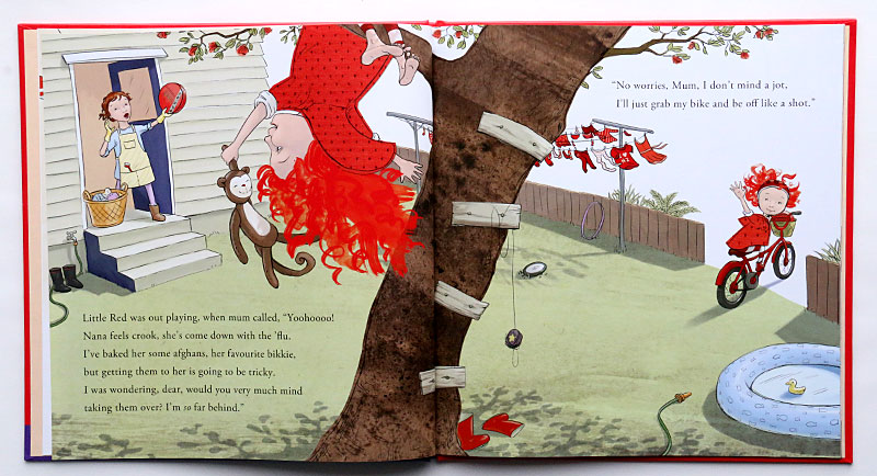 When Little Red has to get on her bike to take some bikkies to her Nana who is crook, the cunning kuri gets there first! But he's no match for team Little Red ...